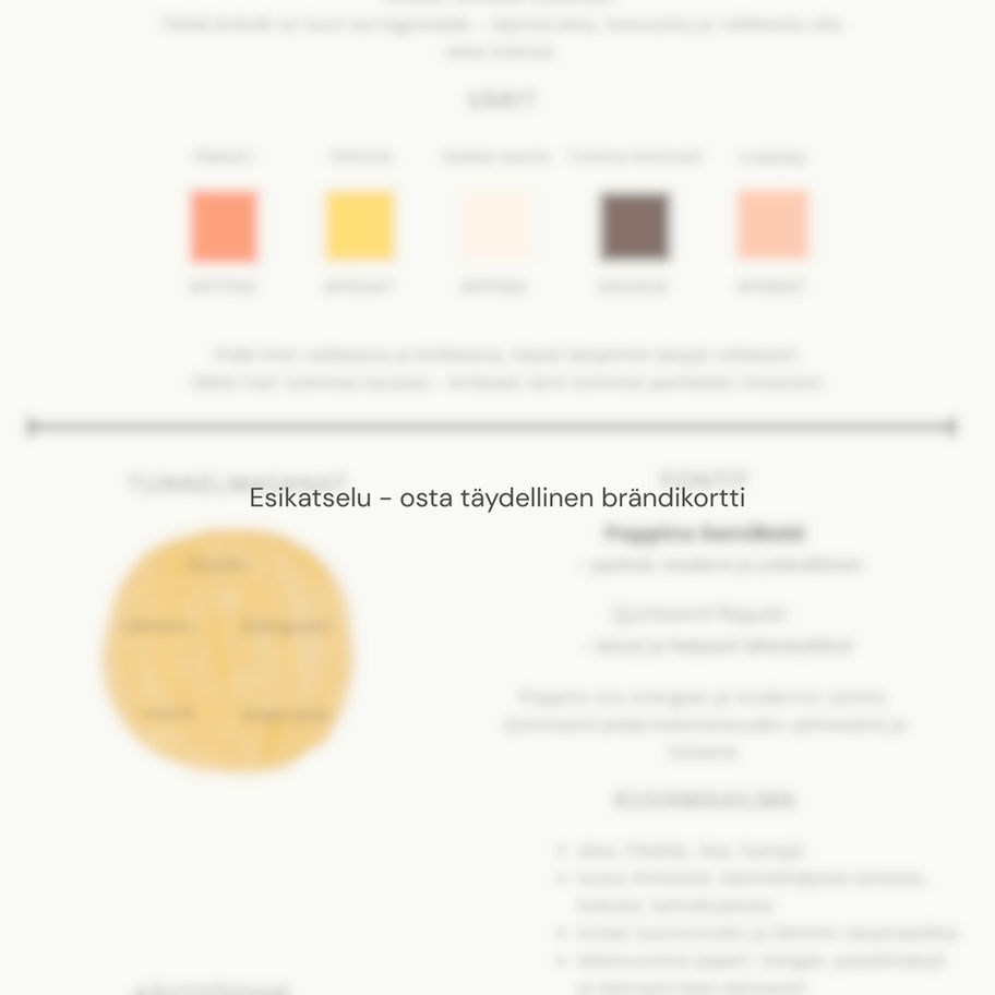 Iloinen ja lämmin tyyli, joka tuo energiaa ja persoonallisuutta brändiisi. Sopii sinulle, joka haluat rennon, positiivisen ja inspiroivan visuaalisen ilmeen.